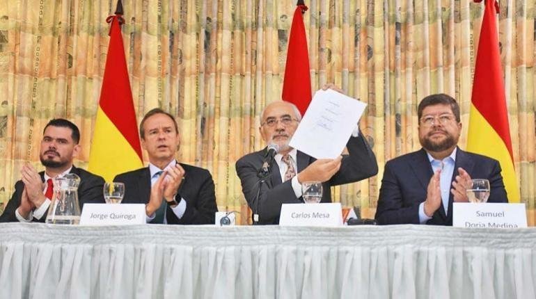 El bloque está conformado por Mesa, Samuel Doria Medina, Jorge Quiroga, Fernando Camacho, Vicente Cuéllar y Amparo Ballivián.