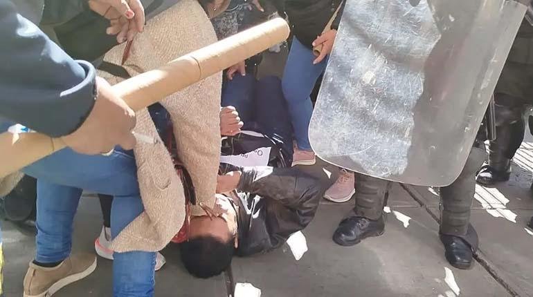 Luego, desalojaron a los maestros y descolgaron a quienes se habían “crucificado” en las rejas del edificio por la fuerza. LOS TIEMPOS