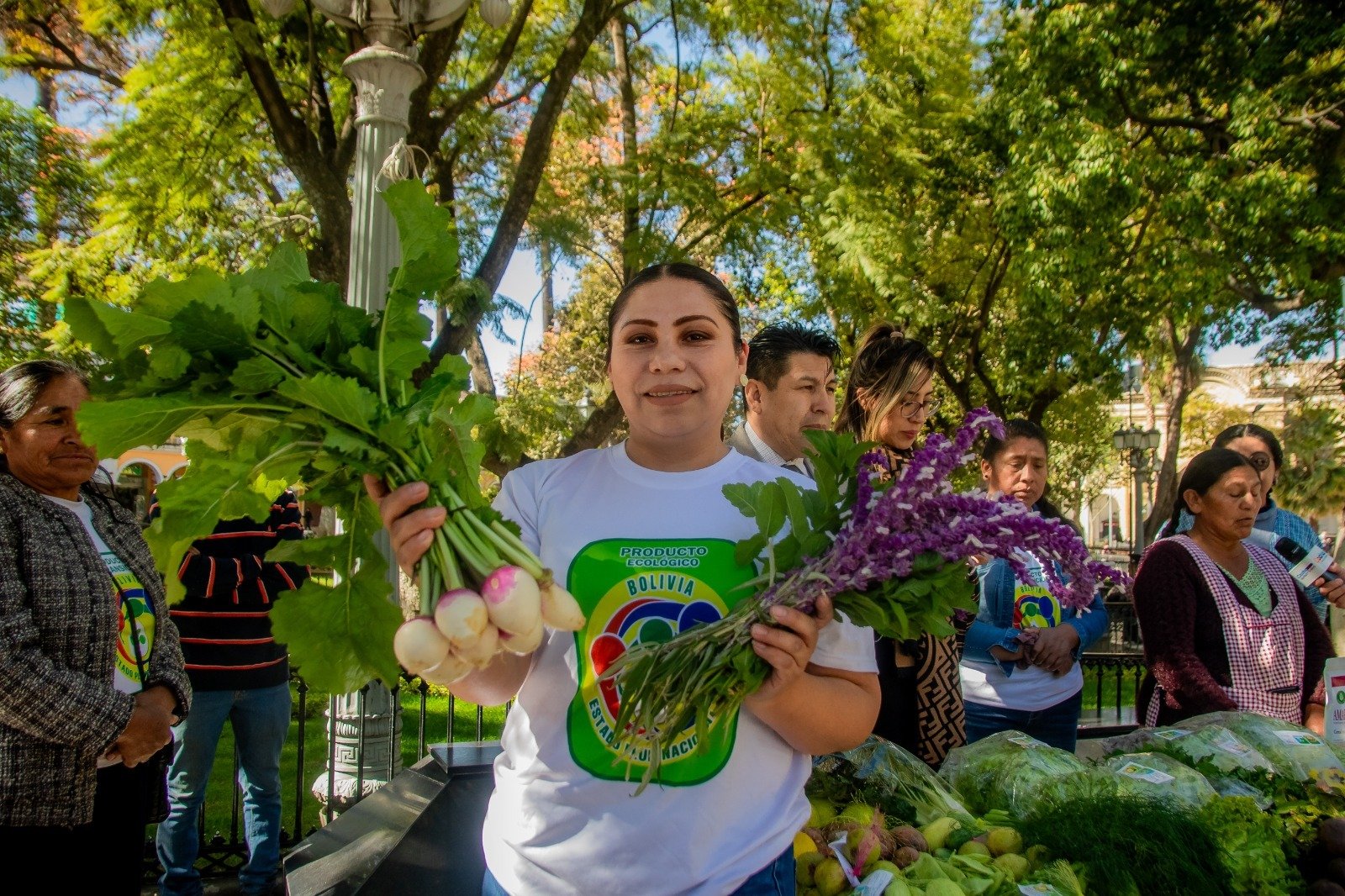 La expositora y productora, Primitiva Chávez, invitó a la población a adquirir cereales, verduras, frutas y flores comestibles desde 5 bolivianos, recordando que Cochabamba