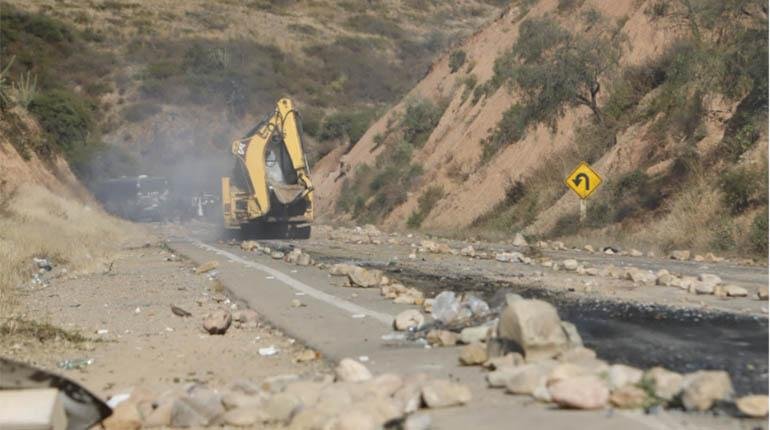 Dos policías resultaron heridos hoy en la mañana durante el desbloqueo de la carretera Cochabamba-Oruro, en Parotani.