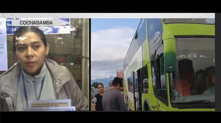 La encargada de la Terminal de Buses de Cochabamba informó que la medida rige para todos los servicios interdepartamentales con destino a Santa Cruz.